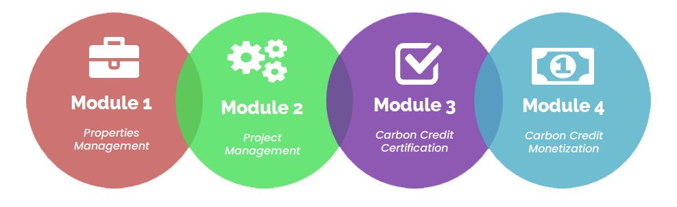 In some cases, clients request a certain amount of Carbon Offset/Credits from us to manage their Carbon Footprint, so the project requires the modules of our services, starting with property management